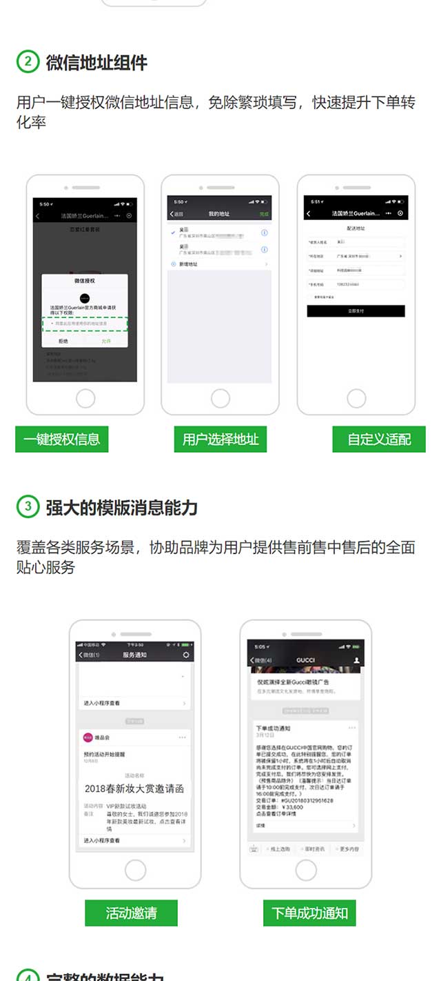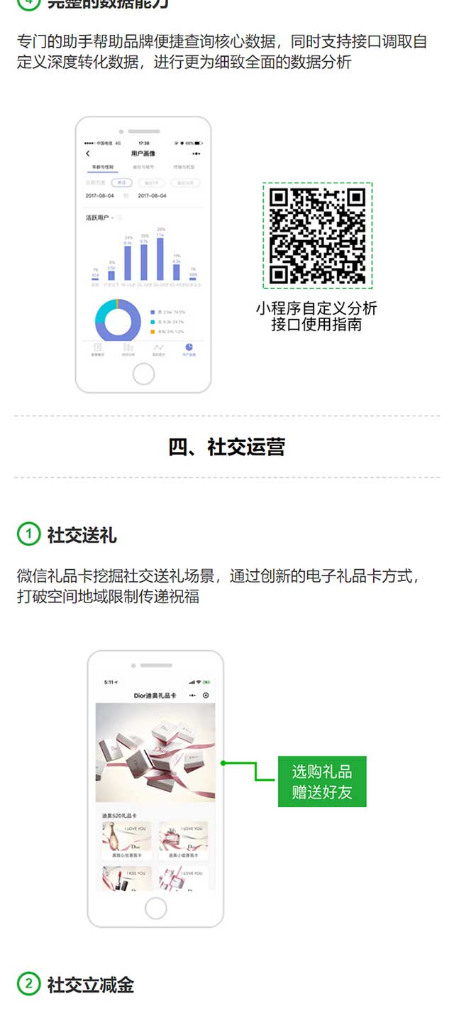 小程序拥有丰富的统计与分析能力,小程序发布之后,就可以通过小程序收集用户反馈的意见与建议,企业可以迅速发现自己的不足和商机,针对用户对产品的反馈,然后迅速改进优化增加系统功能,从而提升客户满意度。此外,您可以通过这些统计数据分析客户喜欢的产品或服务,然后有针对性地推出一些产品或服务、针对性的更新产品活动信息,让用户更加快捷的了解企业的产品资讯,从而激增用户的消费欲望,增加用户再次购买的机会。