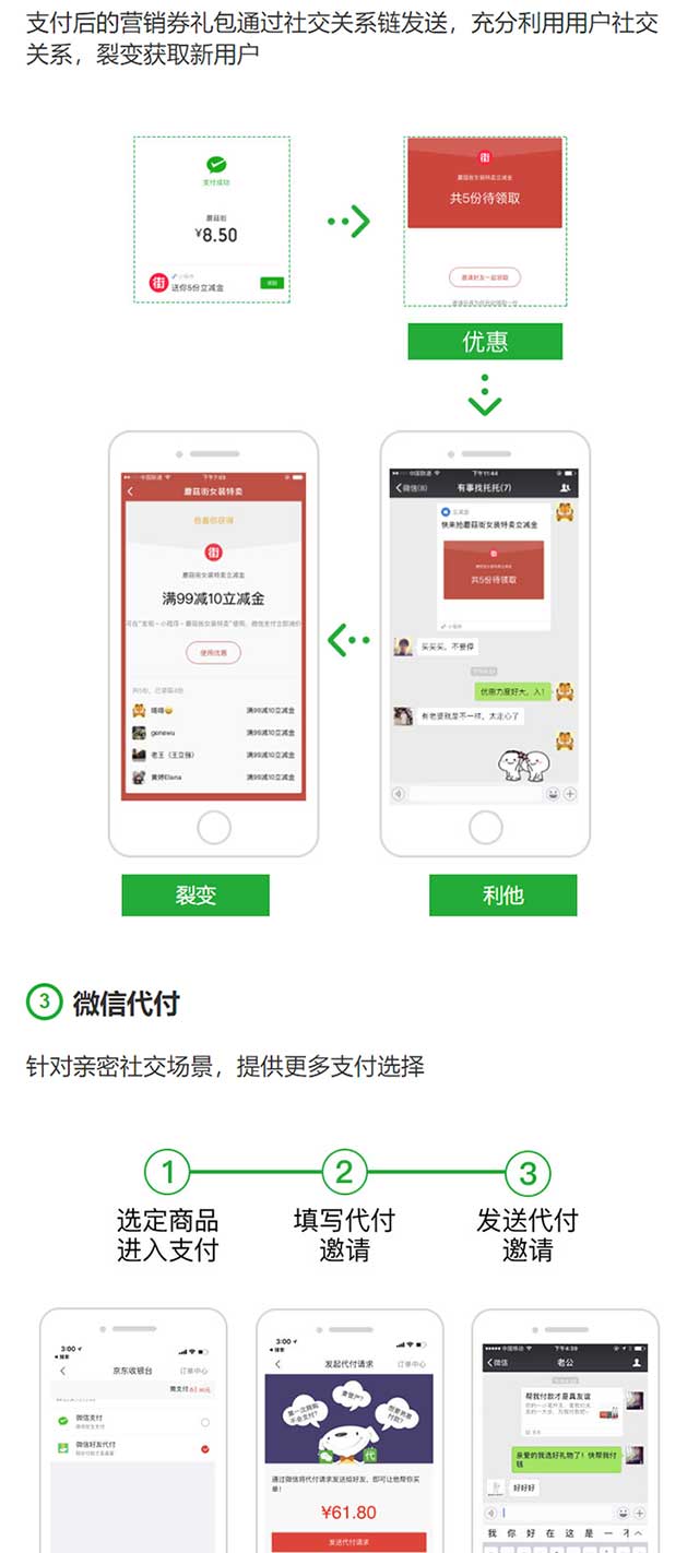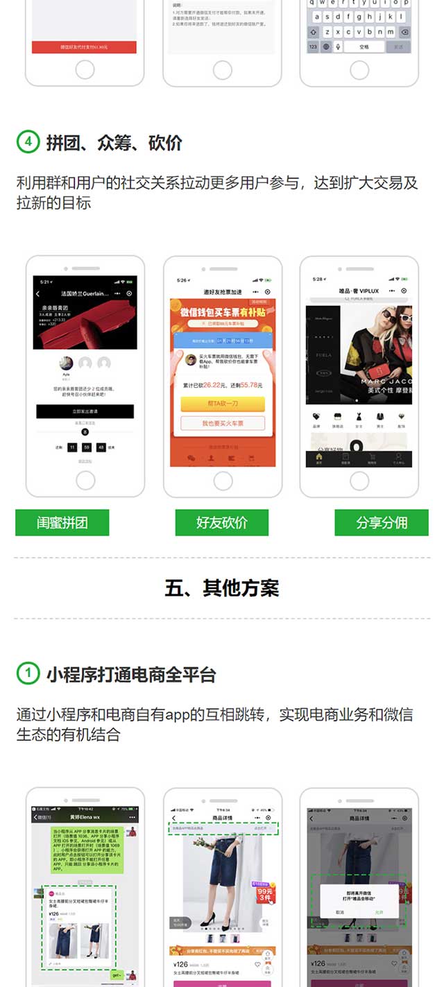 小程序背后依靠的是微信、支付宝、百度、头条等这些巨头参天大树,这些巨头的app用户黏度都非常之高。用户转发分享都是很方便的,利用这一属性企业在开发小程序之后综合一下优惠券、砍价、拼团等营销活动激发用户主动泛销可以实现用户的快速裂变,获得更多的流量曝光。