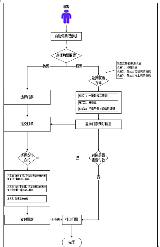自助售票借助自助售票机,自助售票系统在设计上要考虑到客户使用方便,操作简单容易,指导游客快捷地在自助机上购票。同时游客在线上票务系统购票,到达现场可以凭借身份证、短信二维码、手机和验证码在自助售取票机上取票。