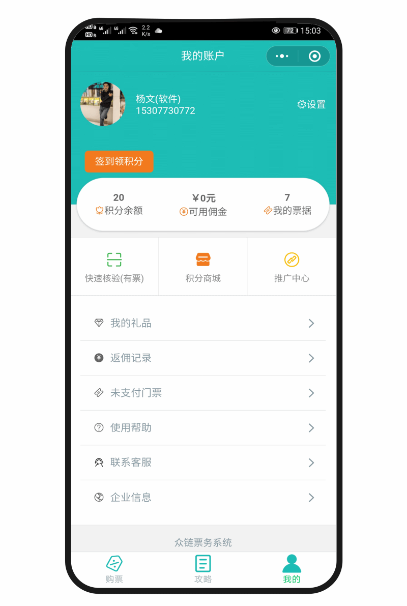 各种门票类型(年票、套票、次票等),门票限售、推广佣金、积分奖励、使用日期 通过参数组合可以生成不同类型的门票。
